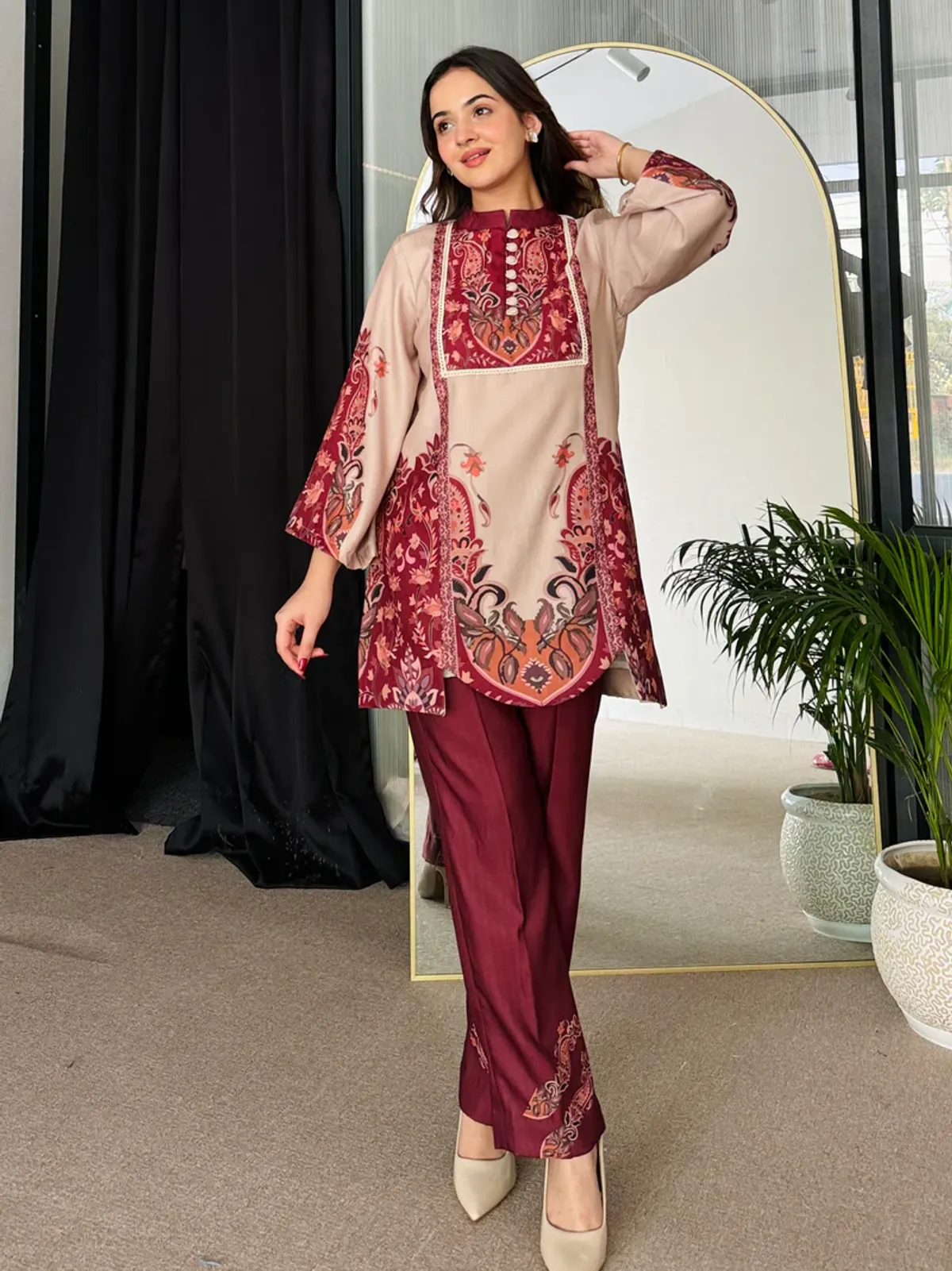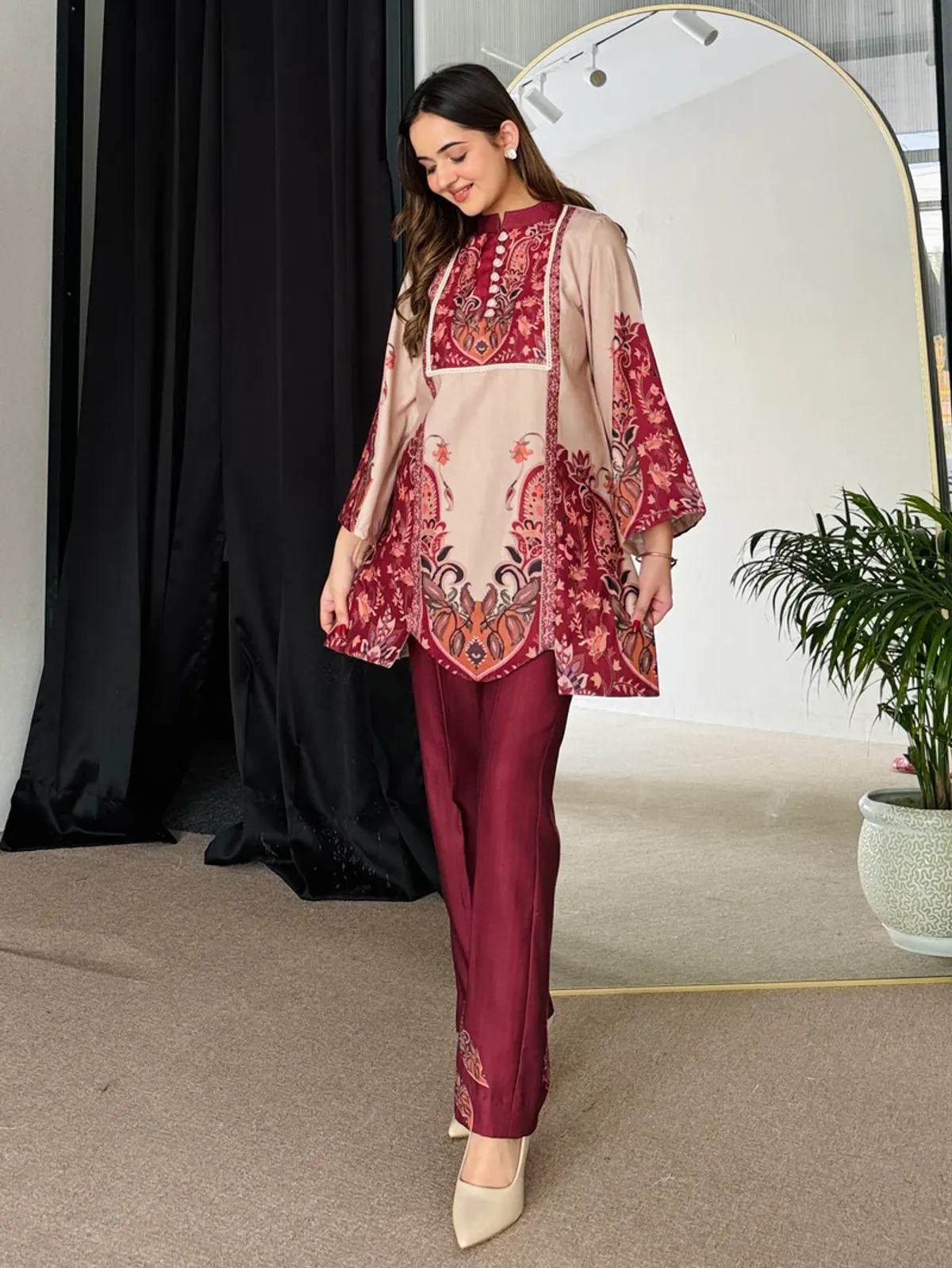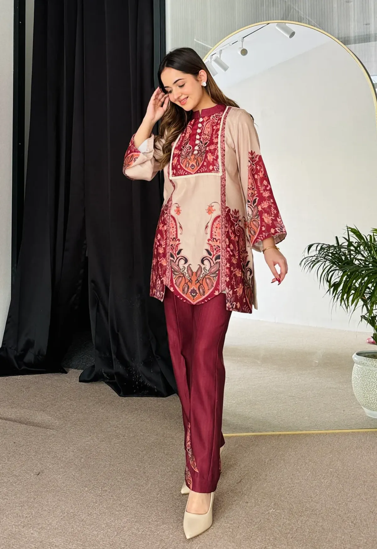 ডিজিটাল প্রিন্ট করা ১০০% কালার গ্যারান্টি।ডিটেইসঃকামিজ ও সালোয়ার ডোলা সিল্ক।কামিজ লং ৪৪সালোয়ার লং ৪০বডি সাইজঃM=38/40XL=40/42XXL=44/45